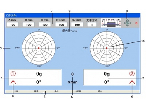 • 系统软件根据测量数据迅速解算出配重质量及角度,提供了完全向导式的,按向导进行很容易的完成动平衡校正。